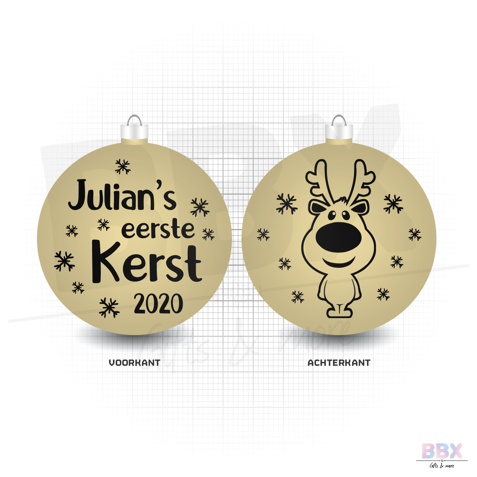 Kerstbal ‘Eerste kerst met naam, jaar en rendier’